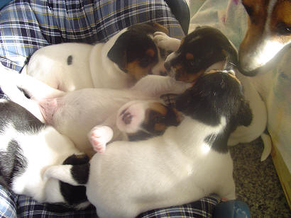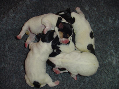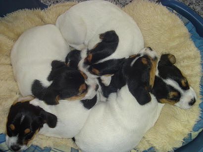 2 Hündinnen, 3 Rüden, alle tricolour