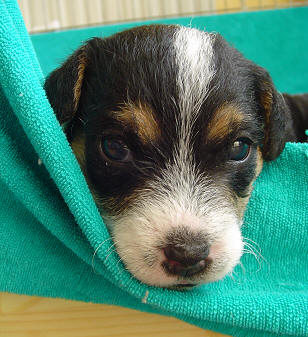 Buster wagt den ersten Blick über den Rand der Wurfkiste.