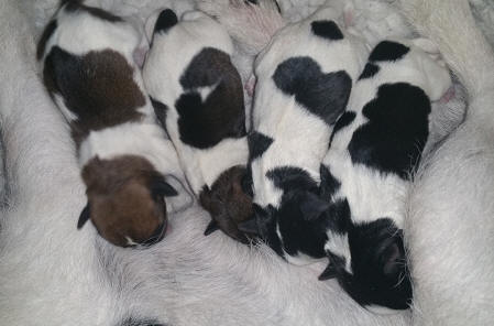 2 Hündinne weiß-braun 2 Rüden tricolor geb. 02.03.2018