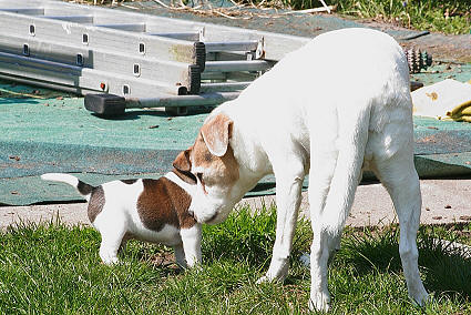 Leider sind unserer dementen Holly die Kleinen schnell zu viel. Aber gucken tut sie trotzdem mal kurz