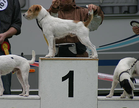 "Jawoll, jetzt bin ich schon mal bester rauhaariger Rüde in der offenen Klasse über 30,5 cm. Da bin ich ganz schön stolz drauf und Frauchen auch"